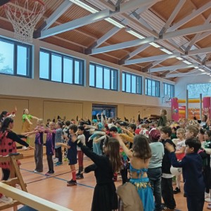 Auch in diesem Jahr fand am Faschingsfreitag wieder eine große Faschingsfeier bei uns in der Schule statt. Dabei wurde in den Klassen und in der Turnhalle ausgiebig gefeiert! Bei den Verkleidungen waren der Kreativität der Kinder mal wieder keine Grenzen gesetzt. Neben den klassischen Kostümen wie Pippi Langstrumpf, Piraten und Polizisten gab es auch viele eigene Kreationen zu bewundern. Verschiedene Spiele und leckere Büfetts in den Klassen sowie tolle Bewegungsstationen in der Turnhalle bescherten den Kindern einen Tag voller Spaß und bester Laune!
