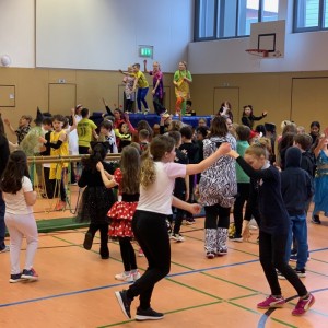 Auch in diesem Jahr fand am Faschingsfreitag wieder eine große Faschingsfeier bei uns in der Schule statt. Dabei wurde in den Klassen und in der Turnhalle ausgiebig gefeiert! Bei den Verkleidungen waren der Kreativität der Kinder mal wieder keine Grenzen gesetzt. Neben den klassischen Kostümen wie Pippi Langstrumpf, Piraten und Polizisten gab es auch viele eigene Kreationen zu bewundern. Verschiedene Spiele und leckere Büfetts in den Klassen sowie tolle Bewegungsstationen in der Turnhalle bescherten den Kindern einen Tag voller Spaß und bester Laune!